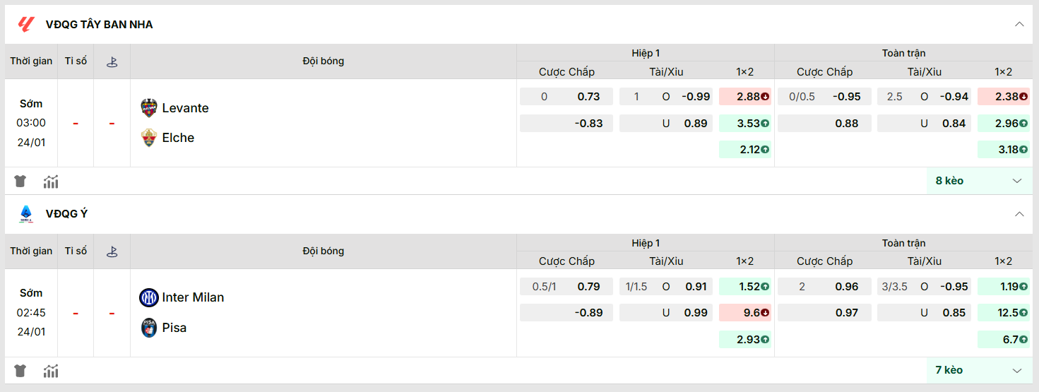Nhà cái đưa ra mức kèo đồng banh hoặc Levante chấp nhẹ là hoàn toàn hợp lý dựa trên lợi thế sân bãi của chủ nhà và sự bế tắc của khách khi đi xa. Tuy nhiên, Elche đang là địa chỉ đầu tư khá an toàn khi họ sở hữu lối chơi có tổ chức và nhân sự đồng đều hơn. Trong bối cảnh Levante đang tan hoang hàng thủ vì chấn thương của Garcia và Elgezabal, việc đặt niềm tin vào đội khách Elche để ít nhất ra về với 1 điểm là lựa chọn mang tính chiến thuật và an toàn cao.Chọn: Elche